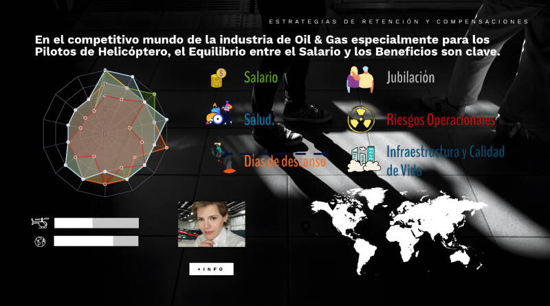 Infraestructura y Calidad de Vida: Se refiere a la combinación de recursos físicos, servicios y condiciones de vida disponibles en las bases de operación y lugares de descanso de estos profesionales. Lugares con acceso rápido a atención médica avanzada son altamente valorados. Instalaciones de descanso, recreación, conectividad, hangares bien equipados, buen mantenimiento, MRO.