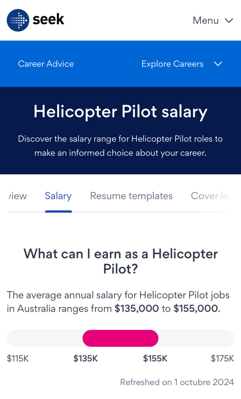 Seek. (2024). Salarios promedio de pilotos de helicópteros en Australia. https://www.seek.com.au/salaries/pilotos-helicopteros